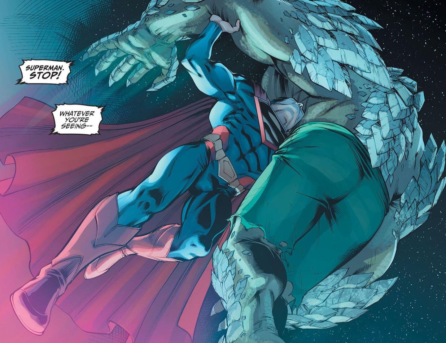 Myliłem się. Musisz mnie wysłuchać. -- Batman nie słucha i atakuje go.