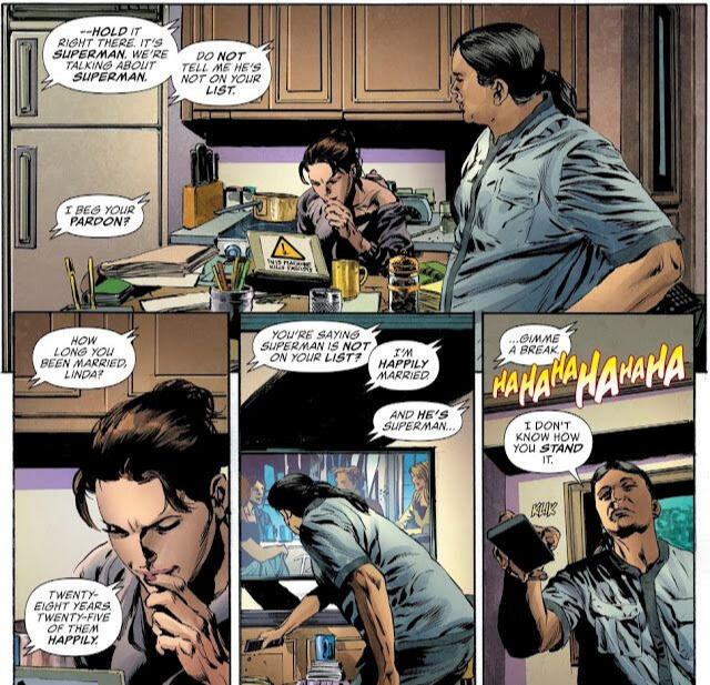 W montażu medialnym na temat Supermana pada wiele stwierdzeń na jego temat i tylko jedna osoba twierdzi otwarcie, że może Superman nie jest żadnym Jezusem czy diabłem, a po prostu osobą, która stara się czynić dobro. Wszyscy inni mówią o tym, że Superman działa, jak działa, czy powinien działać? A na końcu mamy pokazanego Clarka w mieszkaniu, bardzo zmartwionego, oglądającego wywiad z panią senator.Nie wiem, co jeszcze powinien zrobić ten Clark, aby został uznany za dobrego Supermana. On jest już dobrym Supermanem. Filmy skupiają się na trudnościach, jakie przed nim leżą, a nie na tym, co przychodzi mu łatwo. To, że postawiono mu pomnik, nie sprawia, że wszyscy go kochają. Jako ktoś z lękiem społecznym wiem, że nie powinno mnie tak bardzo obchodzić, co myślą o mnie inni ludzie, którzy są mi obcy, ale obchodzi mnie to bardzo – fakt, że mogę oglądać na dużym ekranie Supermana, który ma ten sam problem, bardzo do mnie przemawia.